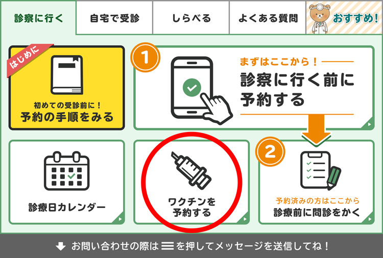 緑町診療所LINE公式アカウントの「ワクチンを予約する」からご予約いただけます。